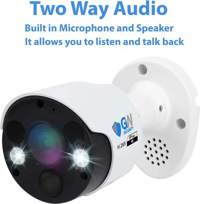 Our GW 4K security cameras featured in these IP systems use advanced 8-Megapixel AI image sensors and have approximately four times the amount of pixels as a 1080p HD security camera. This UltraHD 4K Sony image sensor allows the camera to capture more light, which improves color, contrast, and low-light performance. It also adds an increased ability to digital zoom in on distant objects without drastically reducing image quality.