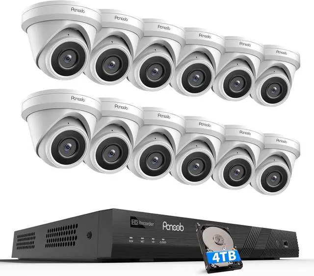 Overview: This poe security camera system includes one 4K 16 Channel POE NVR and 12x 5MP PoE cameras, one 4TB HDD built-in for storage. All cameras with 2.8mm lens around 110 degrees wide view angle, pretty and strong full-metal housing, waterproof IP67, perfect for indoor and outdoor use, built-in microphone for one-way audio.
