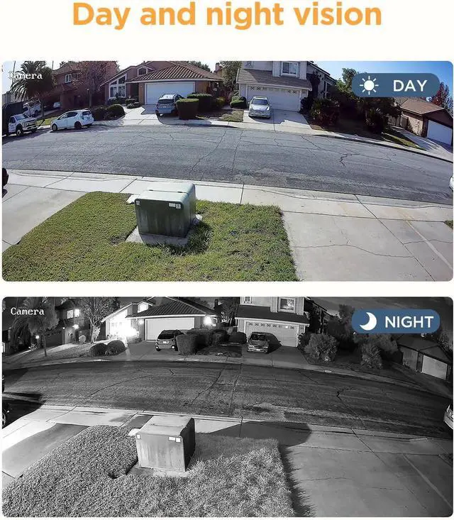 Night Vision: Powerful infrared lights provides high-quality night vision and longer night visible distance up to 100ft, it offers you crystal clear image even in darkness.