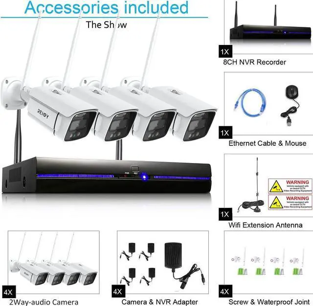This wireless camera system can add 4 extra wireless cameras to complete 8 channel monitoring. Our 3MP NVR works perfectly with all REIGY WIFI cameras (B09LM5WL28, B09B174GQX, B098LQDYTJ, B08Z7J873V, B08MB1DDQ1, B09G7KY5W9, B07YGYB464, B09QKPY).