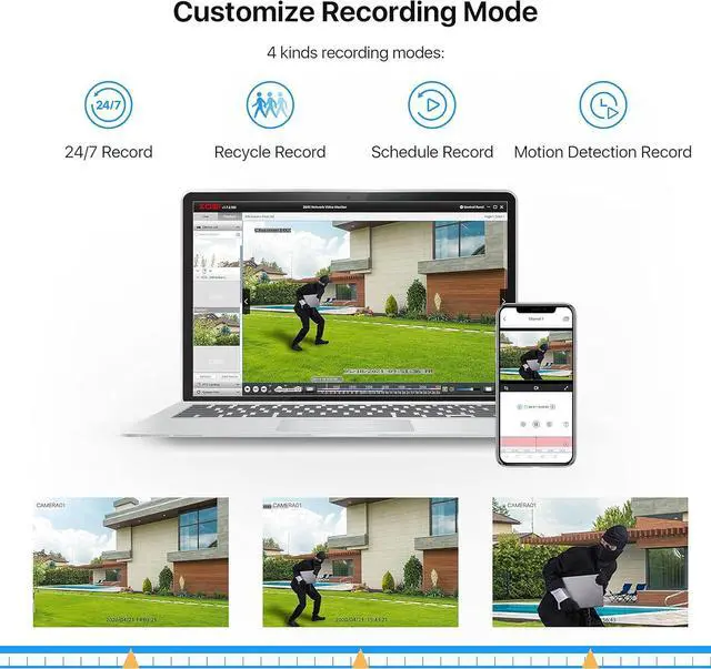 Customize Each Camera with Different Record ModesZOSI DVR offers 4 kinds recording modes to meet your needs: Record footage continuously; Record during scheduled times; Only record when detect motion; Recycle record.
