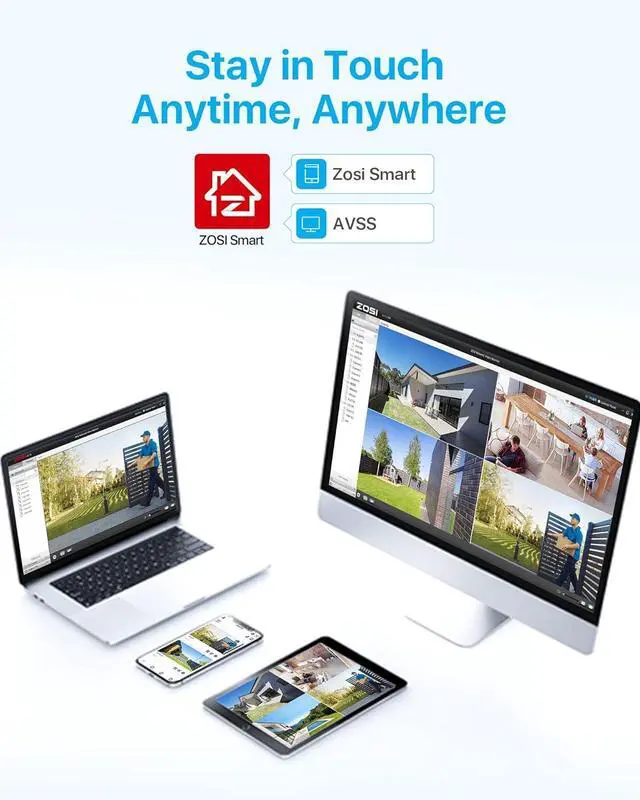 (3). [ Local or Remote Access, Playback Anytime & Anywhere ] __ You can conveniently view and control your security system locally by connecting it to a monitor without internet, or remotely via the free ZOSI Client software on tablets, PCs, or the ZOSI Smart mobile app on smartphones. The system allows you to easily search and playback recorded footage from different days, hours, or minutes, making it simple to find significant evidence or entertaining videos.
