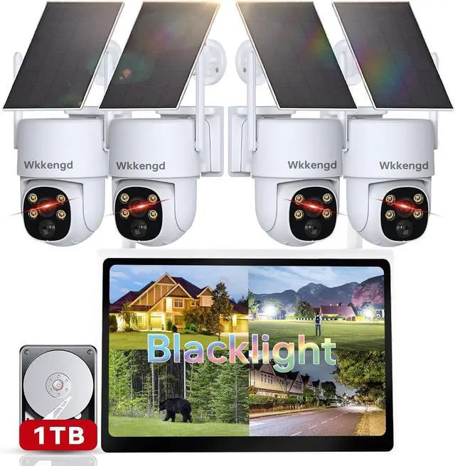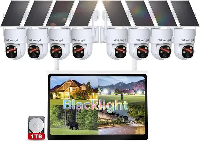 Multi-functional 10-Channel Monitor: Our Wireless Solar Camera provides you with clearer and smoother video to capture every event happening in your home. The monitor supports up to 10 cameras, you can easily add all Wkkengd wireless solar powered cameras, regular WiFi outdoor cameras as needed. Our wireless camera system pre-installed 1TB hard drive,gives you full storage securit