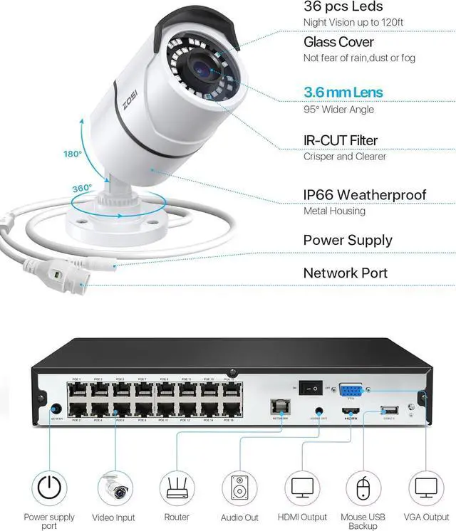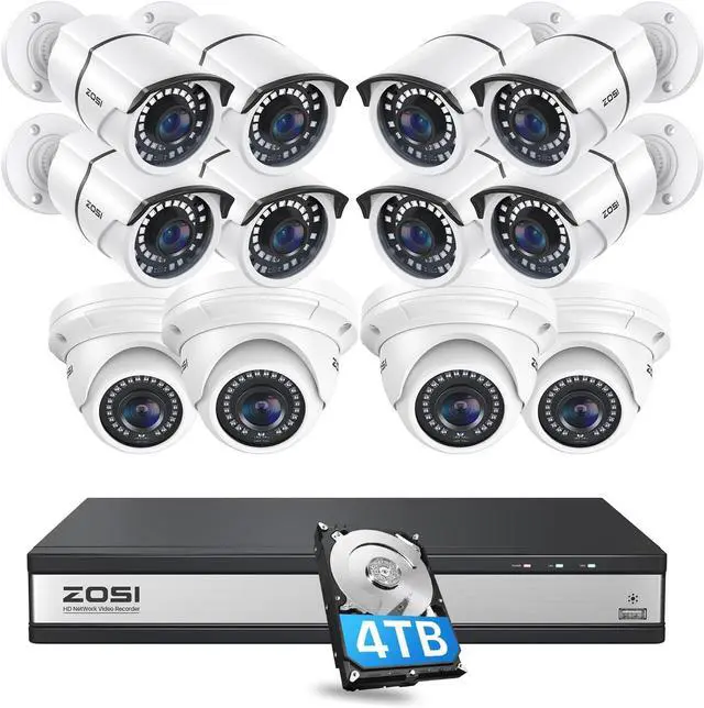 16CH 4K Expandable camera system-This is 16Channel 8MP PoE NVR, It provides you the flexibility to extend additional cameras. You can add more (only ZOSI) 4pcs 8MP,5MP or 2MP POE Bullet or dome cameras.