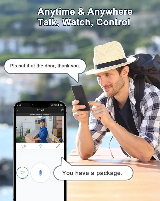 Security camera system with audio,listen and talk with your family, furry friends, or visitors via Eseecloud pp.