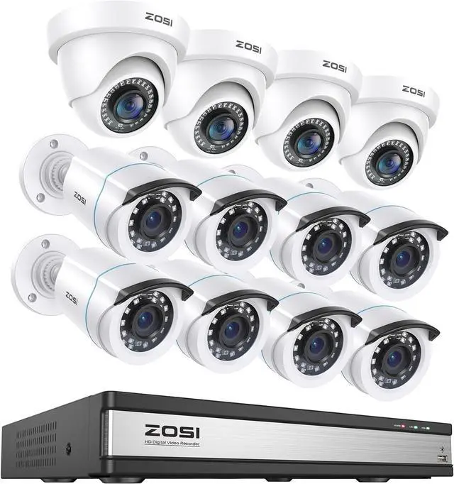ZOSI 1080p 16 Channel Security Camera System with AI Human Vehicle Detect, H.265+ 16CH DVR Recorder, 12 x 1080p Surveillance CCTV Bullet Dome Camera Outdoor, 80ft Night Vision, 90° View Angle (No HDD)
