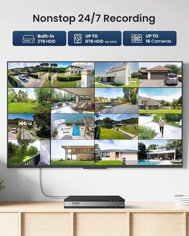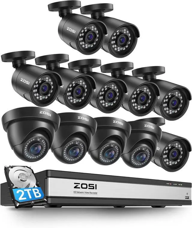 Previous pageNext pageZOSI 1080p 16 Channel Surveillance Security Camera System with AI Human Vehicle Detect, 12 x 2MP Weatherproof Bullet Dome Camera Outdoor Indoor, H.265+ CCTV DVR, Night Vision, Remote Access, 2TB HDD