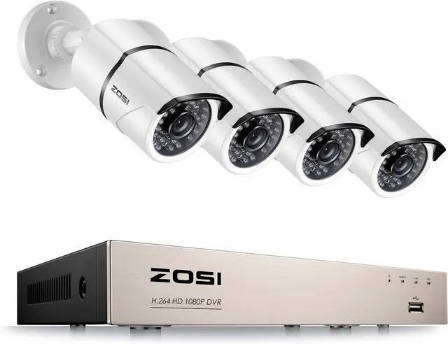 ZOSI 8CH 1080P Security Camera System 8CH 1080P DVR with 4pcs 1080P Security Cameras NO Hard Drive 1080P Security Camera 8 Channel 1080P 4-IN-1 CCTV DVR Expandable Camera System Local View or Remote View from multiple devices Customizable Motion Detection Zones & Alert No Recording for Specific Areas Remote and Local Intelligent Playback