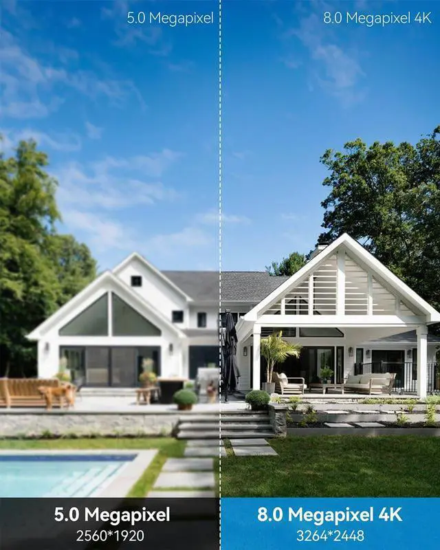 The video showcases the product in use.The video guides you through product setup.The video compares multiple products.The video shows the product being unpacked. Ultra HD 4K Clarity: This security camera system offers 8MP 4K (3840 x 2160) ultra HD quality for detailed monitoring.