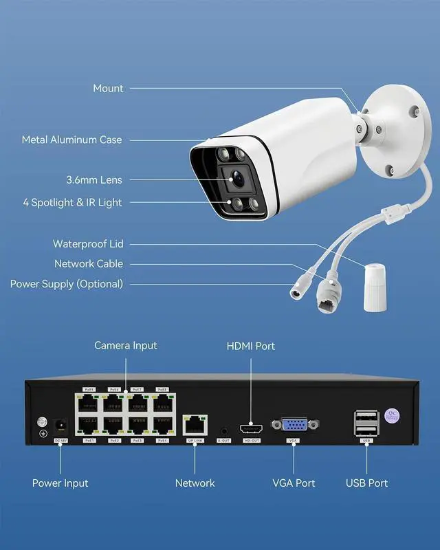 Durable Metal Body: Built with a rugged aluminum alloy casing and IP66 waterproof rating, our cameras are designed to withstand almost any weather.