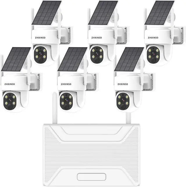 ZHXINSD PTZ Security Cameras Wireless Outdoor Solar Powered, Pan Tilt 360 View 10 CH Ultra 2K Home Security Camera System with 6PCS Cameras Human Detection Two Way Audio Color Night Vision 64G Storage