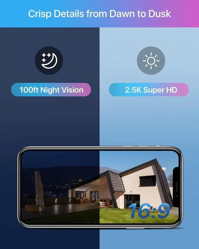 4MP UHD and 100ft Night VisionThe camera can get 4MP Ultra HD real-time video at 25fps, record clear details and capture more of the action without missing a beat. Upgraded night vision up to 100ft. No matter day or night, you can see clearly what is happening at home or in business.