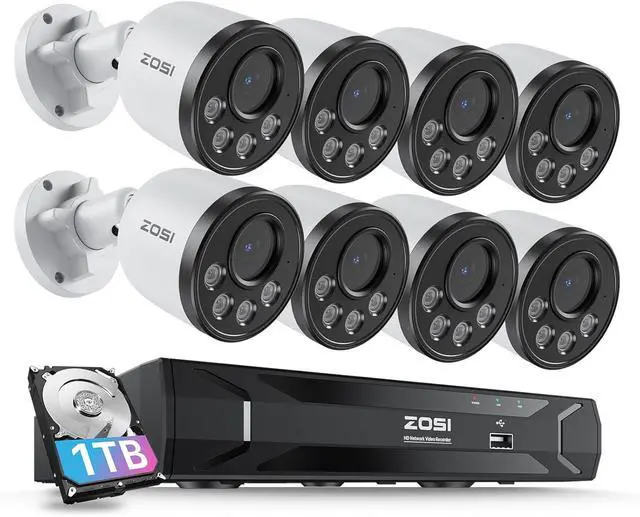Gadpiparty ZOSI 5MP 8CH PoE Security Camera System with Audio,H.265+ 5MP 8 Channel NVR with 1TB HDD,8pcs Weatherproof PoE IP Cameras Outdoor Indoor,Human Detection,100ft Night Vision,for Home 24-7 Re