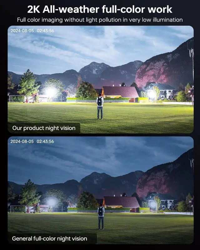 Wkkengd Solar Security Camera System with Aurora Lux Color Night Vision True Color Night Vision, Turn Night into Day Privacy Area Protection