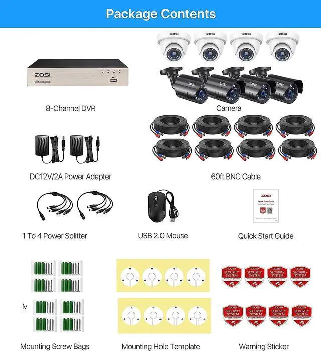 ZOSI CCTV system have multiple recording modes. Set motion detection, sechedule or 24/7 recording for each camera respectively to meet your needs.