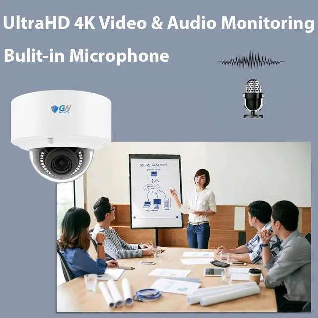View video and images with more clarity and detail with GW 4K 8MP (3840 x 2160) cameras. 8MP video has 100% more pixels in a frame than standard 4MP (1520P) HD and capture high-definition 8MP 2160P HD video four times higher than 1080P cameras. Additional pixels make the digital zoom more effective, providing more details at close distances or the ability to digitally zoom in on details at a greater distance than before.