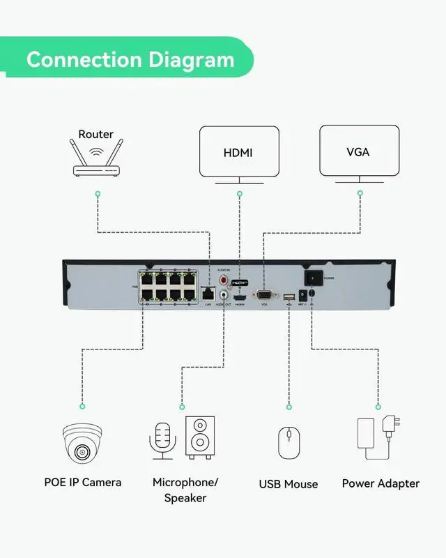 4K Ultra HD recordingPre-installed 2TB surveillance grade HDD for local storageUp to 8ch synchronous playbackRecord and playback with audioSuper efficient smart & event playback