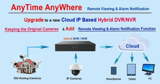 H.264/H.265 compression with low bit rate and better image quality.HDMI & VGA Up to 1920x1080P@60Hz Resolution.Combination of 24 total Analog + IP cameras; Supports 16 Analog + 8 IP cameras, 15 Analog + 9 IP ... or to 8 Analog + 16 IP cameras by IP Address.DVR can only support Analog camera's resolution up to 5MP Lite resolution and IP camera's resolution up to 8MP Lite resolution.Support One SATA HDD, Each HDD can up to 8TB storage (With Pre-Installed 2TB Hard Drive).Support USB 2.0 devices, Easy backup with USB FLASH DRIVE and Network.Support schedule for motion detection, and PELCO-D & PELCO protocol for PTZ control.Support Cloud based cell Phone APPs for both Android and iPhone without confusing port forwarding.CMS to manage multi devices on internet.