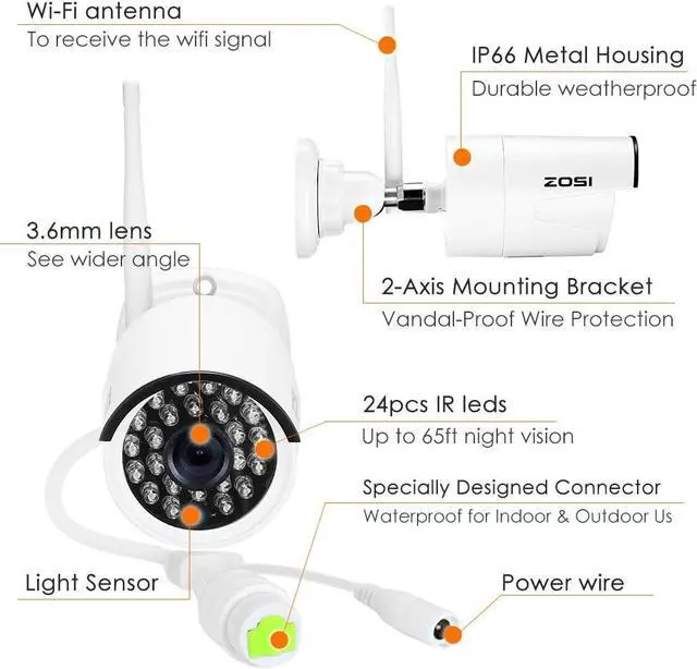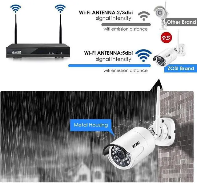ZOSI 1080P 4 channel Wireless security camera system Full HD 1080P Video & Day and Night Surveillance Free from Complex Wiring Rellable Storage +USB Back up Extend WiFi distance -- Repeater Setup Extend WiFi distance -- Use the Extension WiFi Antenna Extend WiFi distance -- Position the Antenna Correctly Wired connection