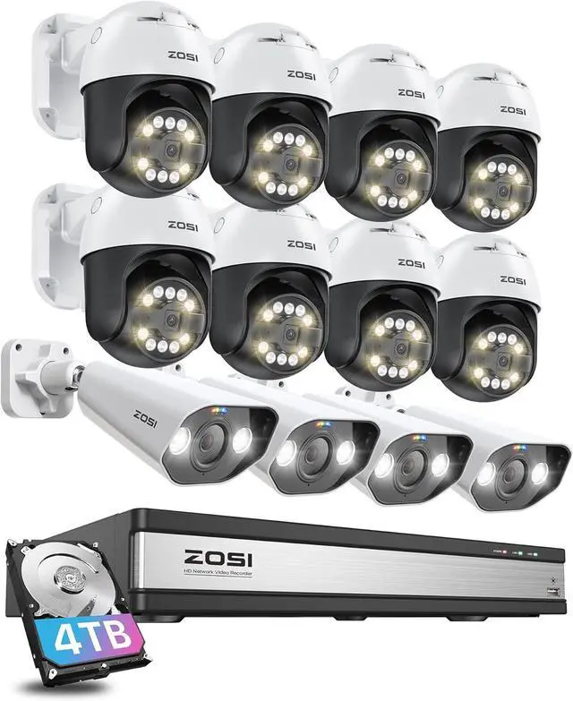 4K PoE Security Camera System PoE Security Camera System 355° Pan & 140° Tilt, Uninterrupted Field of View