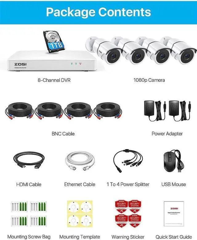 Compatible with ZOSI 720P, 1080P, 5MP Lite Security CamerasThis 8 Channel 4-in-1 DVR which supports ZOSI analog, HD-TVI, CVI, AHD camera. It provides you the flexibility to add 8pcs 720P, 1080P, 3MP(12.5fps), 4MP(12.5fps), 5MP(12.5fps) ZOSI CCTV Security Cameras