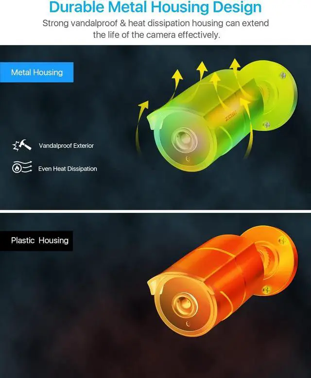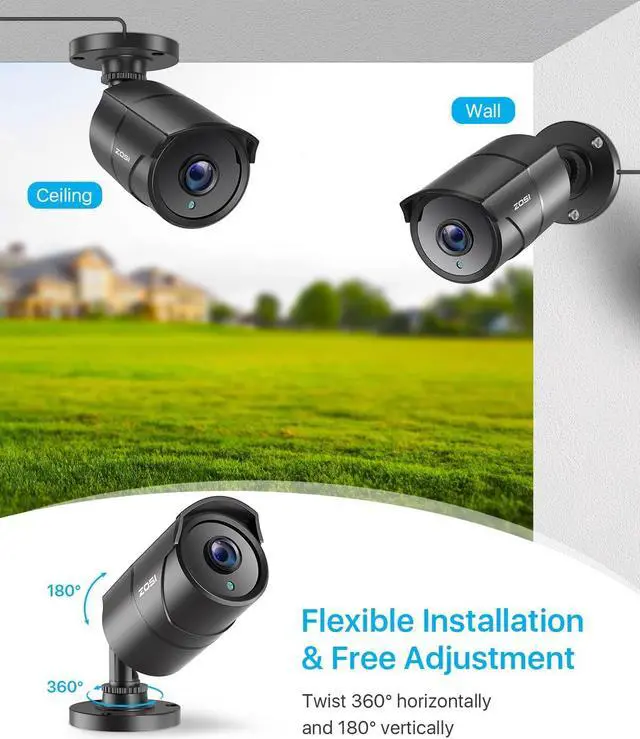 IP66 Weatherproof,Indoor and Outdoor useAluminum metal vandal proof & waterproof can withstand the toughest of outdoor conditions,adjustable 3-axis camera stand, cable through bracket for hassle free use in rainy or snowy days.