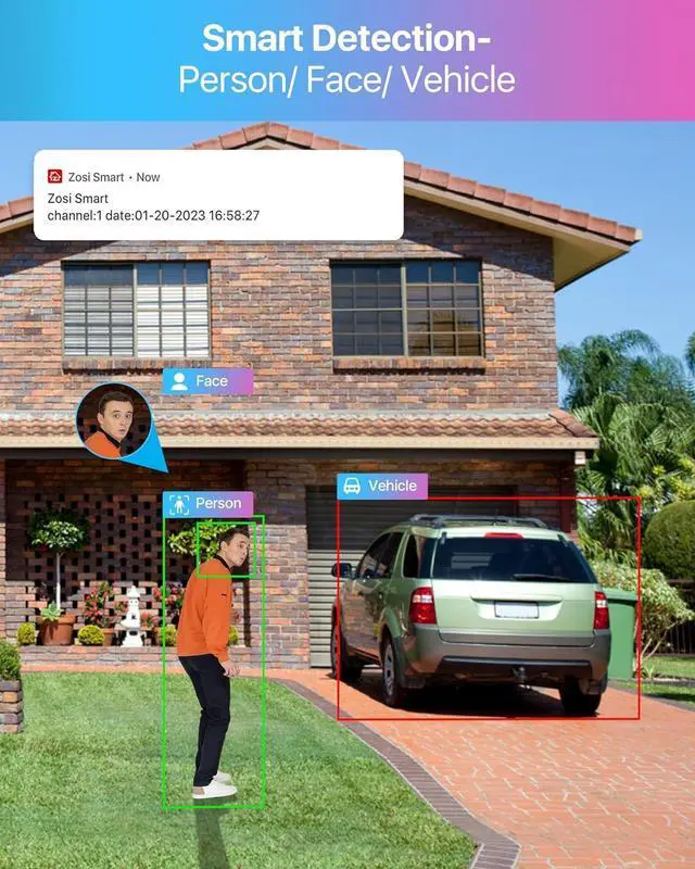 [Face/Person/Vehicle Detection with Push Alerts]Our AI-powered detection feature intelligently identifies faces, people, vehicles, and other objects, reducing unnecessary notifications. Receive instant push alerts and email notifications whenever motion events are detected. Stay informed and on top of any activity with our advanced detection technology.