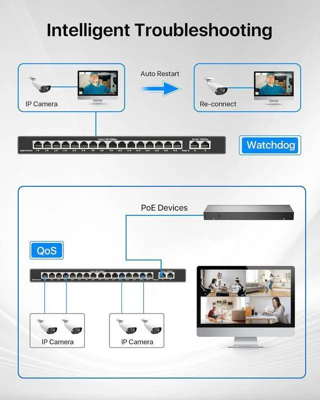 [4K 16-Channel NVR Upgrade to 24CH Expandable]Easily expand your 4K 16-channel NVR system to a 24-channel system with our expandable solution. Add a PoE switch (not included) to support up to 24 PoE cameras. Enjoy the flexibility to add more cameras, including (ZOSI only) 8MP, 5MP, 4MP, 3MP, or 2MP PoE cameras, to enhance your surveillance.