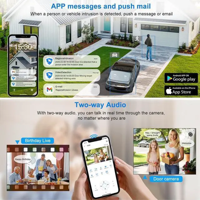 8MP IP Network PoE CameraEfficient H.265 compression technologyHuman/Vehicle detectionLine-crossing detection, Vehicle retrograde, Staff absence, Loitering, Area intrusion, Vehicle illegal parkingBuilt-in Microphone and Speaker, just real-time intercom via mobile phoneIP66 Dust and Waterproof RatingSupport PoE 48V InputImage Sensor: 1/2.8" Progressive Scan CMOSMax resolution:3840*2160Video Compression: H.265/H.264Audio Input: Built-in Microphone, record with audioLens: 2.8 mm, monitoring angle 110 degreesNumber of Infrared LEDs: 4 pcsNight Vision Distance: Up to 100 ft/30 m-- Package List: