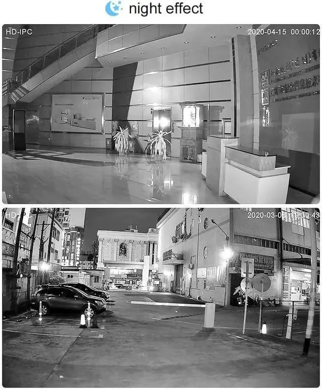 Equipped with IR night vision technology, the cameras infrared lights will auto working and capture clear footage when at darkness or low-light conditions
