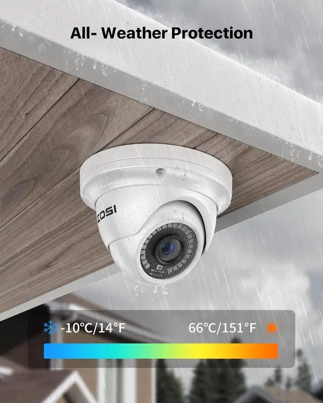 6pcs 5MP Weatherproof Dome CameraWith the weatherproof and full metal housing, this security camera can stand on guard anywhere, outdoor or indoor, and in any harsh weather conditions. Get a sharp and crisp image day or night with the camera's automatic IR-CUT filter, Up to 80ft night vision in total darkness, and 130ft Night vision in ambient light. More than 3.0Lux the night vision is color.