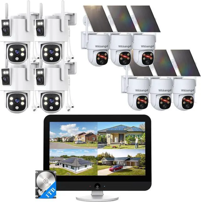 All-in-One Plug & Play 12.5" LCD Monitor - The wireless security camera system is automatically paired with all ptz cameras during factory setup. At the same time, The monitor is equipped with a stand for adjusting the angle when it is placed on a desktop.Easy to install, work even without Internet