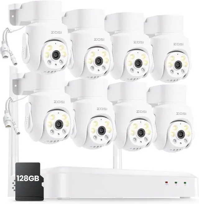 (2). [ 3K 5MP HD & Color Night Vision ]__ Capture every detail with stunning 5MP clarity, The package includes an 8-channel NVR 128G SD Memory Card for 24/7 record and 8 X 5MP 3K IP66 weatherproof wireless cameras, which offer optional color night vision, providing vivid visibility even in low-light conditions, ensuring 24/7 comprehensive protection for your home.
