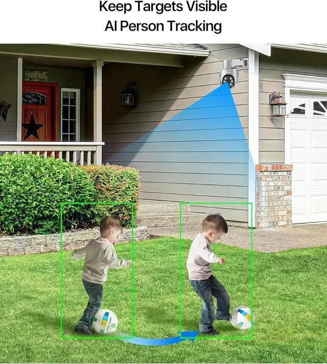 360° Full Coverage & Smart AI Human DetectionThis pan-tilt security camera provides complete 355° horizontal and 50° vertical rotation, ensuring zero blind spots in your surveillance. Its advanced AI system precisely identifies human movement and automatically tracks suspicious activity, delivering proactive security protection.