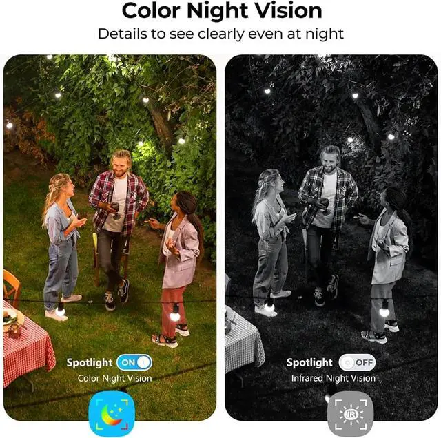 2K UHD | Full-Color Night Vision | 3x Zoom- With 2K Ultra HD lens, led spotlight, this security camera outdoor wireless captures crisp, detailed videos day and night and activates full-color night vision for more vivid details. The 3x digital zoom lets you focus on key details like faces, license plates, or packages.