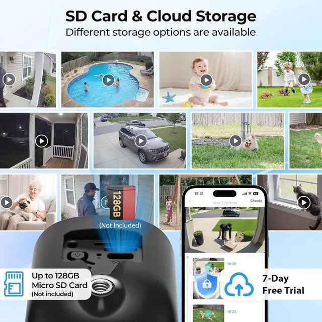 Free Local Storage | AI Cloud Subscription Options- No subscription needed: Record directly to a microSD card (up to 128GB, not included) and receive instant alerts for all motion events. Upgrade for smarter security(subscription required)- Unlock cloud storage and AI-powered detection. Get smarter alerts that distinguish between people, vehicles, and pets, and set up custom activity zones. New users get a 7-day free trial.