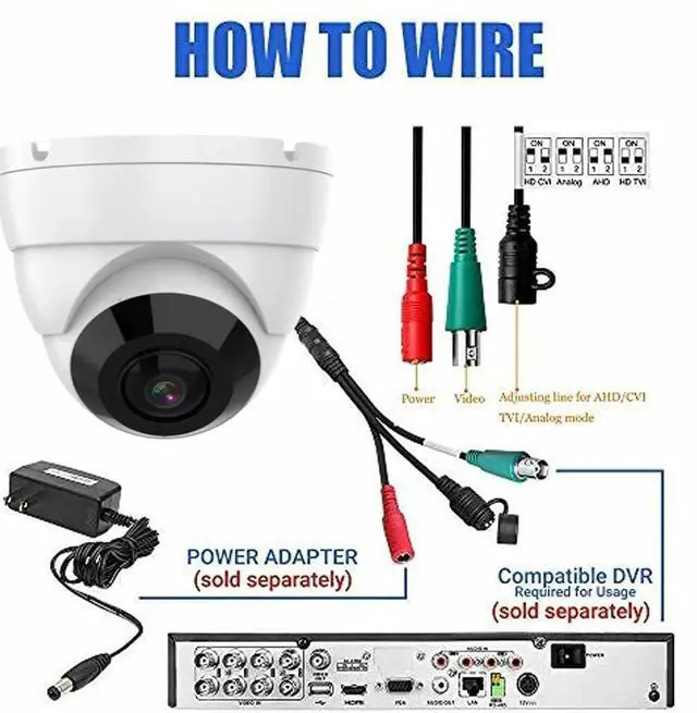 Compatible with Most Brand CCTV System- This dome camera default video output is TVI 4MP Resolution, please change to 5MP from DVR if needed Supports 4MP/5MP HD-TVI, HD CVI, AHD and 960H 1000TVL. Video Mode must be switched according to your DVR type.