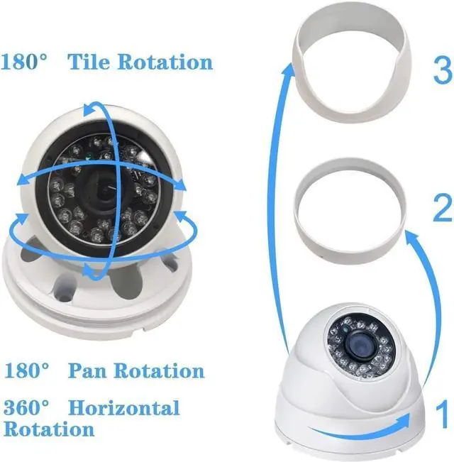 5MP Camera ONLY Works with 5MP or 8MP 4K DVR- This camera does NOT work with 3MP or lower resolution DVR, only work with 5MP or 4K 8MP DVR. This camera is 5 Megapixels high definition HD TVI/CVI/AHD/960H(1000 TVL), 30ft IR night vision range. It has a 1.8mm eyefish lens with 180 degree wide Field of View (FOV) to cover large areas