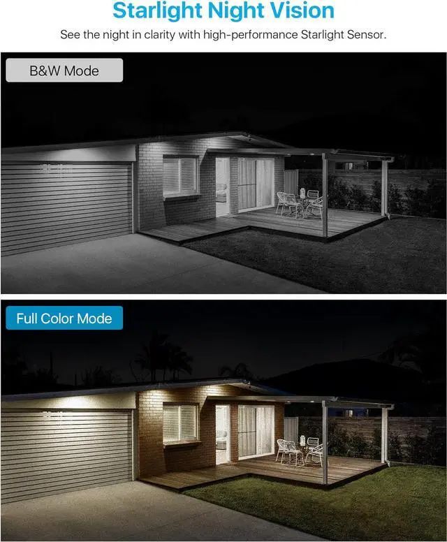 4K 8.0MP Ultra High Definition and Starlight Night Vision-- 4K (8MP) Ultra HD is 1.6X clearer than 5MP and 4X clearer than 1080p. With the starlight sensor and 100ft IR night vision, this 4K PoE camera provides a clearer night vision in low-light conditions.