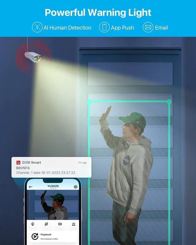 Human Motion Detection & Smart Light Alarm-This 4K Outdoor Camera will capture motion activities, real-time notifications will be sent to the Mobile Phone. This Security IP Cam is alert and ready to react to any potential danger via a smart light.