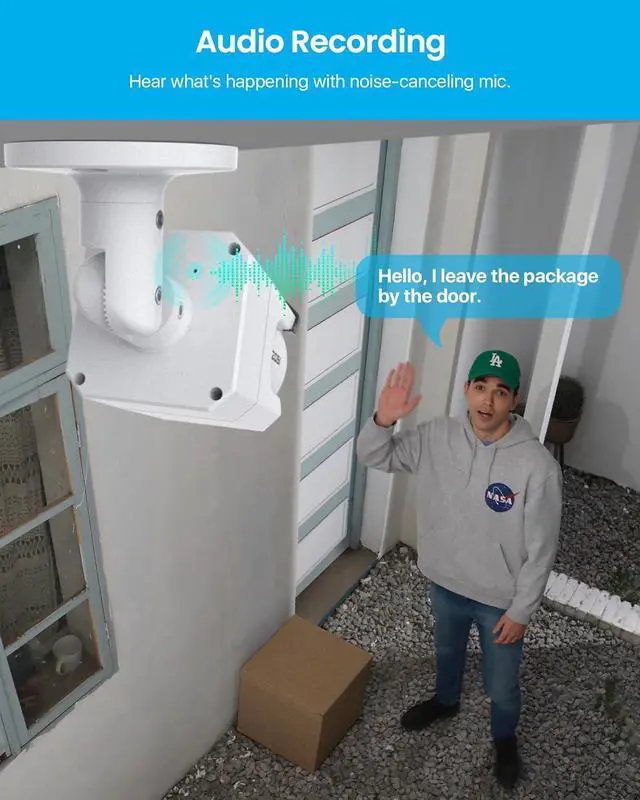 IP66 Weatherproof & One-way Audio--Built with IP66 weatherproof, it is designed to withstand extreme temperatures and protect from dust and rain. Ideal for indoor & outdoor applications. Built-in mic captures high fidelity audio and provides you with critical evidence.