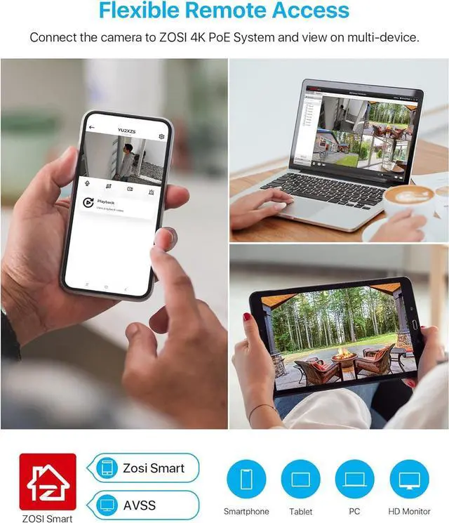 ZOSI ZG1058D 8MP POE IP Camera--This security camera is an add-on camera, it cannot be used separately. It needs to connect the ethernet cable and NVR to work. Only Compatible for ZOSI 4K PoE NVR Recorder (Model: ZR08DN, ZR16DK). Each Surveillance camera comes with an ethernet cable.