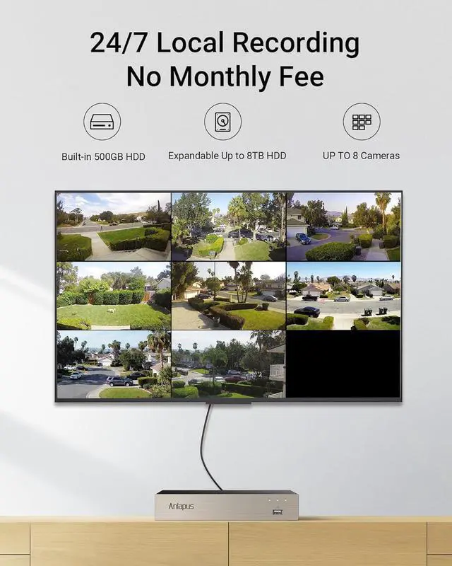 24/7 Continuous Recording with 500GB HDDComes with a pre-installed 500GB security-grade hard drive (expandable up to 8TB) and H.265+ video compression, which saves up to 50% more storage space than traditional formats. Choose from continuous recording, motion-triggered capture, or scheduled modes to maximize your storage efficiency. Easily export footage via USB backup for evidence, ensuring you never miss a critical moment.