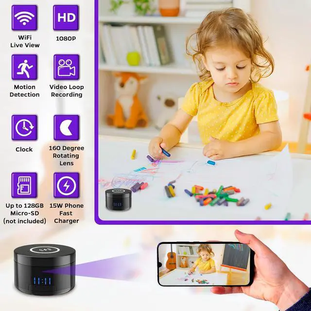 Security Camera in a Sleek Digital Clock DesignThis versatile clock camera seamlessly functions as a modern digital clock and a full-featured indoor camera. It offers 160° wide-angle coverage and 1080P HD live streaming