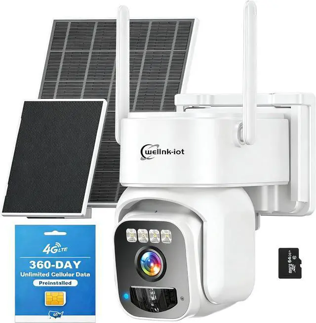 • 360-Day Mobile SIM Data, Free Cloud & 64GB Card IncludedThis 4g lte cellular security camera comes with a built-in prepaid SIM (360-day unlimited data, renewable via app), 64GB memory card (expandable to 256GB), and lifetime basic cloud storage (3-day playback, 100 uploads/day) to keep your footage safeeven if the camera is stolen.