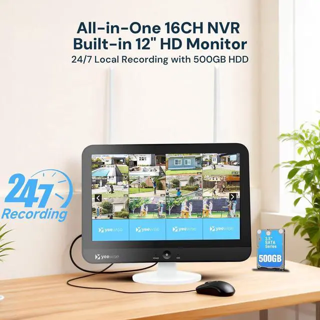 Plug & Play with 12" Monitor: No complicated setup required. The system comes pre-pairedjust power it on and start monitoring instantly using the built-in 12" HD monitor.