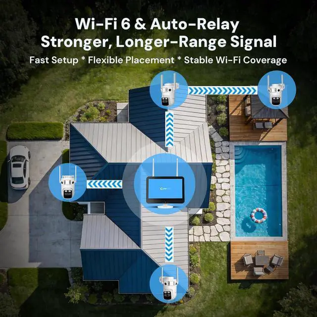 WiFi 6 with Built-In Relay: Enjoy faster, more reliable connections with WiFi 6 technology. The built-in relay extends the signal, ensuring your cameras stay connected across large properties for smooth streaming and uninterrupted monitoring.
