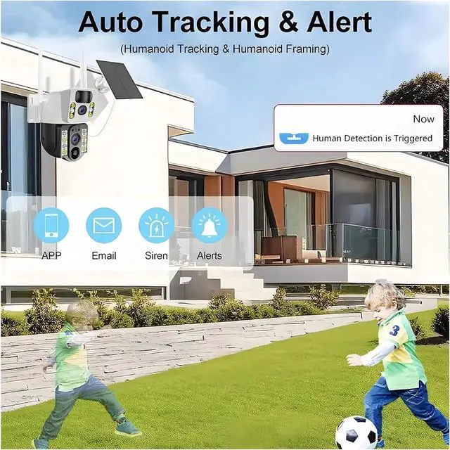 This 4K 8MP wireless solar surveillance camera gives you unrivalled image clarity with a resolution up to 4K Ultra HD so that every detail is clearly visible. Whether it is day or night, you can clearly see the facial features of visitors, license plate numbers, and even every corner of the park. With powerful pixels up to 8MP, you can ensure that security monitoring does not miss any details.