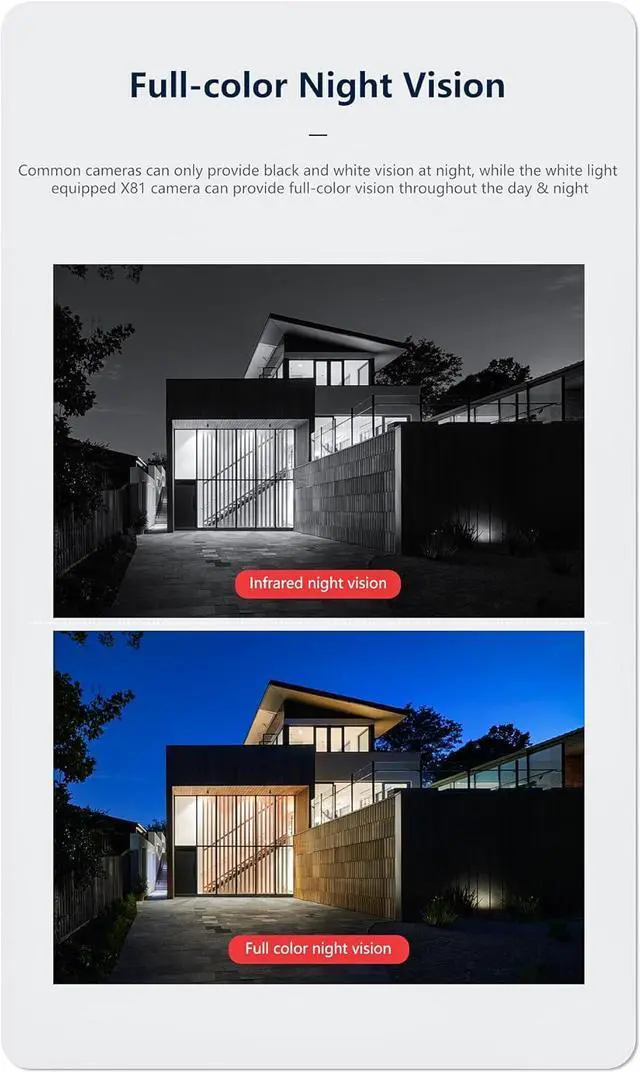 1080P FULL HD VIDEO & COLOR NIGHT VISION: Capture every detail in vivid 1080P Full HD during the day and in full color at night. Whether you're monitoring your driveway or living room, enjoy sharp, bright footage 24/7 with enhanced clarity for identifying faces, packages, or vehicles.