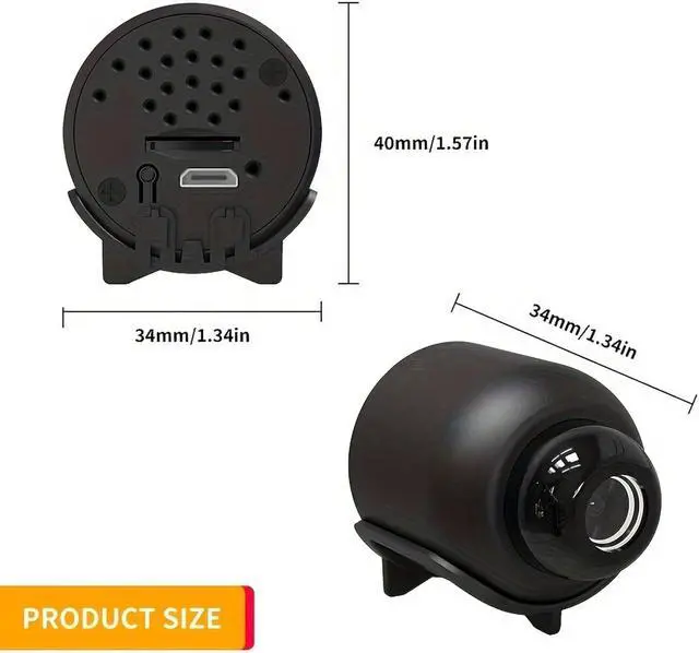 26ft Night Vision -Equipped with 6 non-luminous infrared lights, this mini security camera can monitor in the dark and remain undetected, advanced night vision function make it clearly record night videos within 26 feet.